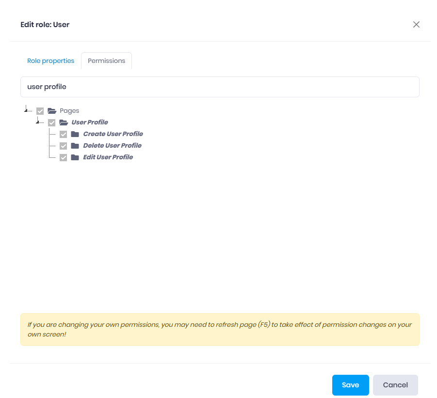 Updated the permissions table to allow a user to update the profile details without needing to access the User Permissions. |