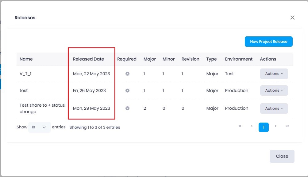 We have linked the Project Release ID, Version Major to a Template Version, so Release Versions are associated to the correct Template Version. |